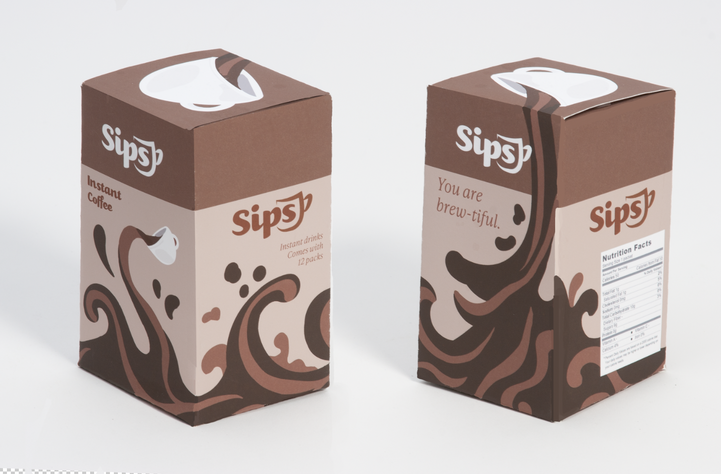 Sips and Good For You are two imagined beverage companies I made packaging for. I used my illustration skills to create a design that flowed around the package. I focused on the hierarchy of typography, thinking through the most important information the consumer will see.